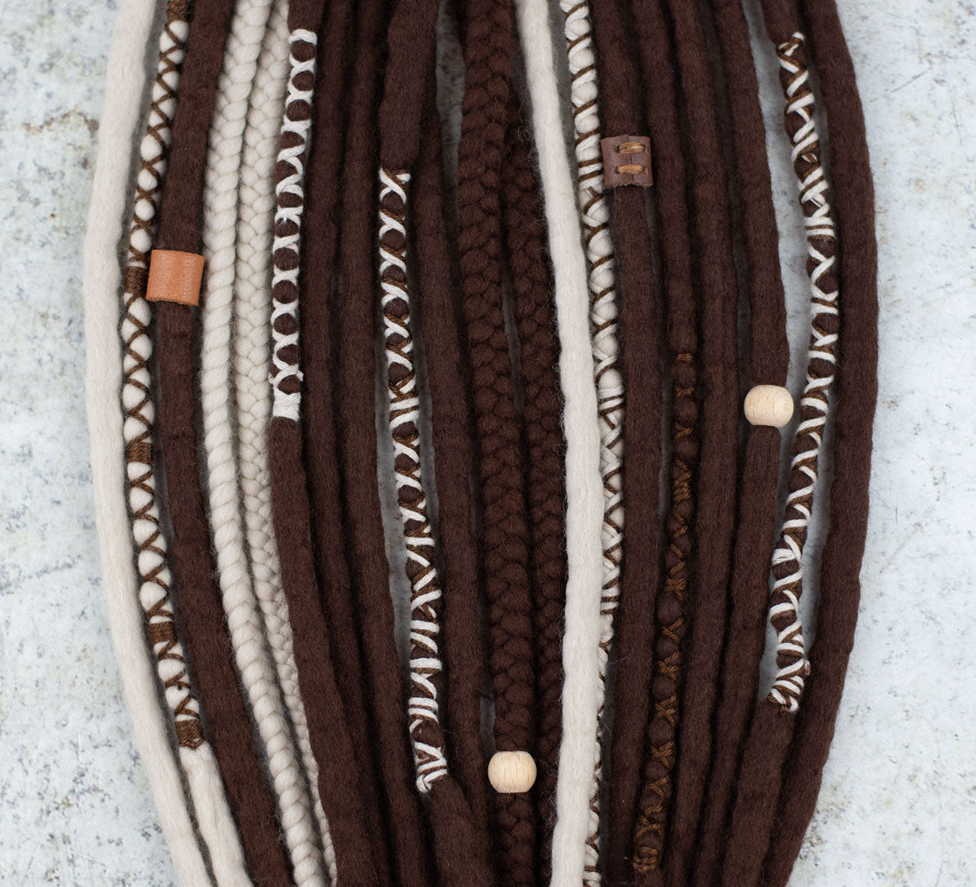 • 10 double ended wool dreadlocks with braids and x-decorated locks